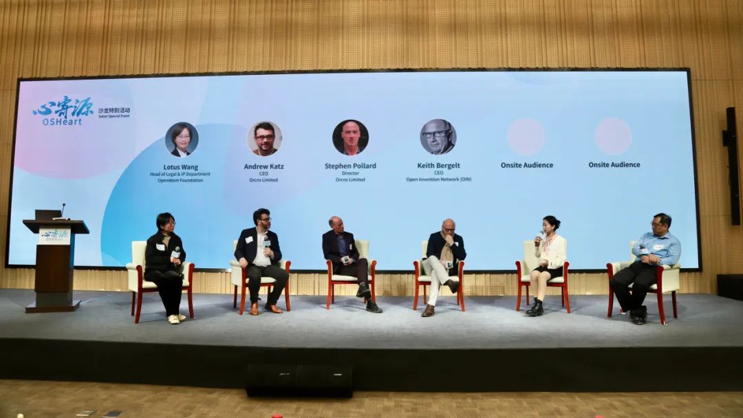 本次圆桌讨论采用了创新的Fishbowl形式,在开放原子开源基金会法务与知识产权部部长王荷舒的主持下,Andrew Katz、Keith Bergelt、Stephen Pollard,以及现场加入的观众就开源法律问题进行了深入交流。这种形式受到嘉宾和观众的高度评价,展现了开源文化的友好精神和合作共享价值。
