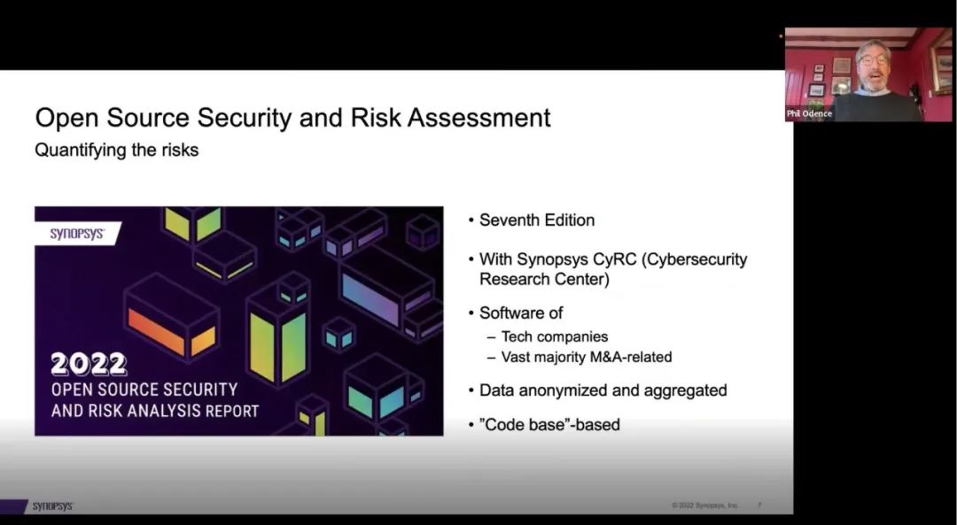 2022第五期“心寄源”开源法律沙龙以线上视频会议形式成功召开,受到与会嘉宾的大力支持和一致好评。本期沙龙邀请了新思科技(Synopsys)软件质量与安全部门(Software Integrity Group)Black Duck审计团队的总经理Phil Odence先生,围绕“企业的开源合规挑战——以及如何应对(Open Source Challenges for Clients ...and how to manage)”主题进行深度剖析,与会嘉宾交流探讨。