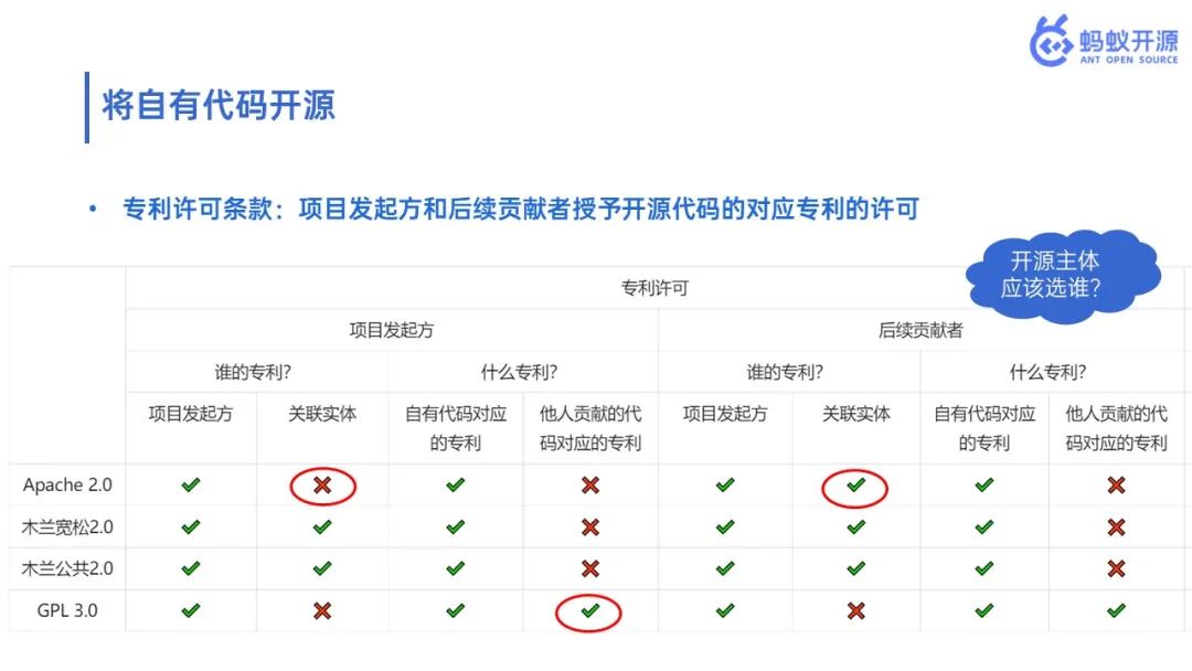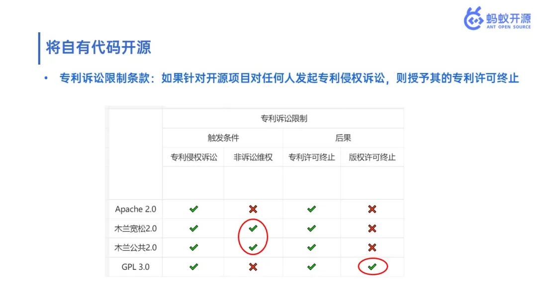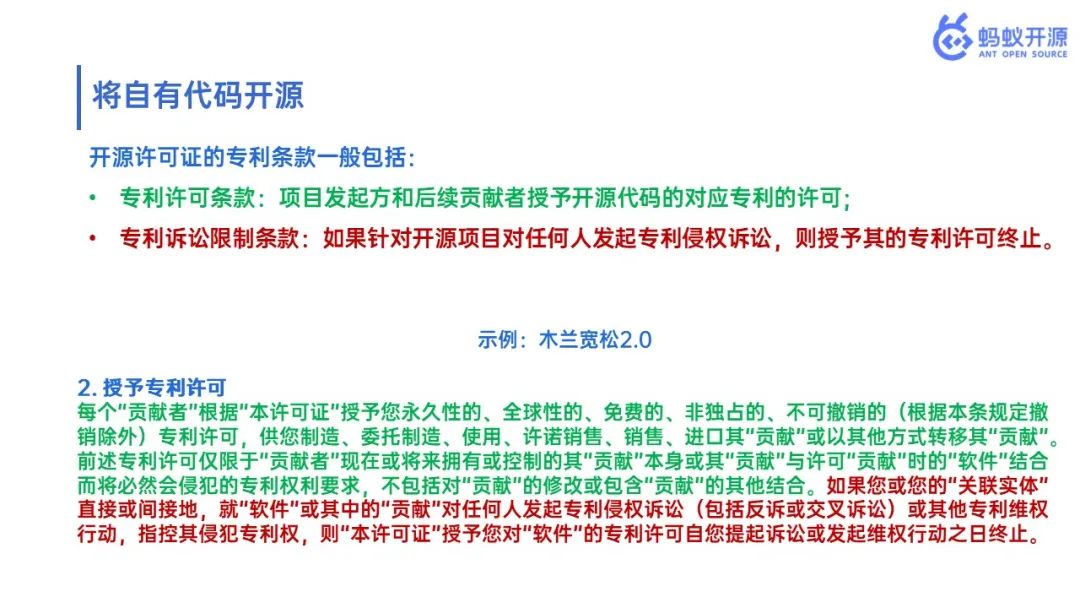 (1)专利许可条款:项目发起方和后续贡献者授予开源代码的对应专利的许可;